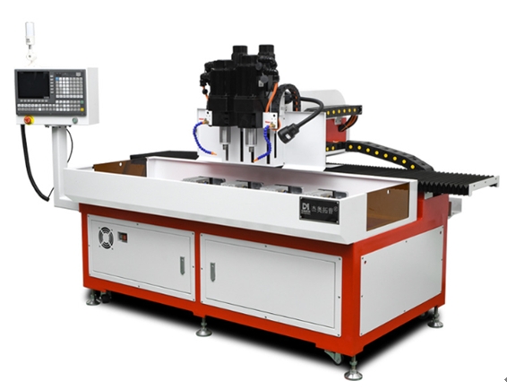 這臺數控熱熔鉆攻一體機將產品熱熔的孔位做避空,整個產品由旋轉氣缸向下壓實,貼合工裝底板,保證加工時產品不會抖動,且有一定的支撐。加工好后,工人再按一下手動閥,氣缸就會自動松開。